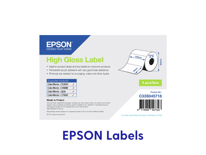 Epson is the trusted name in coloured label printing solutions, offering a range of high-performance printers, labels and ink designed to meet the needs of businesses of all sizes. Epson printers deliver exceptional quality, reliability, and speed, helping businesses improve efficiency and streamline their operations.