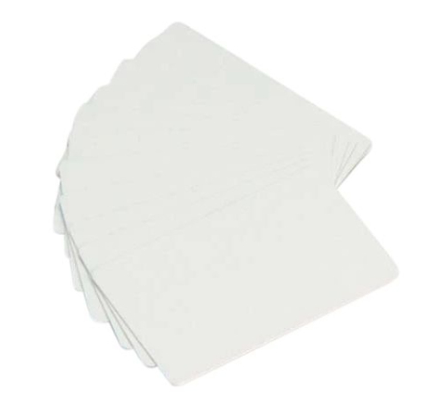 • The Zebra 104523-116 Blank White PVC cards are a great choice for businesses printing high-quantities of photo ID, membership cards or visitor passes. These 760-micron thick cards are lightweight and have a smooth, blank white surface ideal for printing on with any plastic card printer.