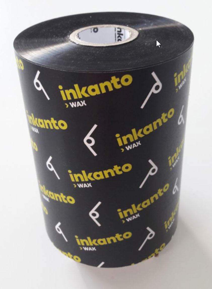 Thermal transfer ribbon, Inkanto, AWR 8, Wax, Roll-width: 83 mm, Core-width: 110 mm, Core: 12.7 mm, Length: 74 m, Ink side: Outside, Printhead: Flat-Head, Colour: Black