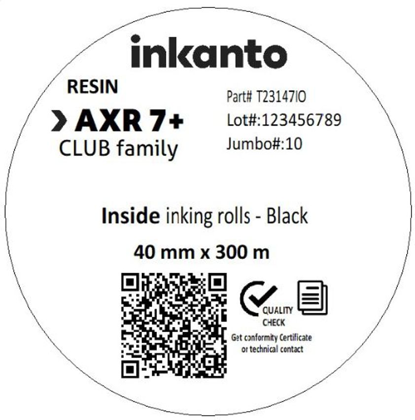 Thermal transfer ribbon, Inkanto, AXR 7+, Resin, Roll-width: 40mm, Core-width: 40 mm, Core: 25.4 mm, Length: 300 m, Ink side: Inside, Printhead: Flat-Head, Colour: Black