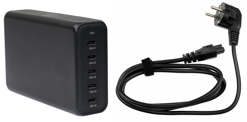 A Powerful and compact multi-charger for all your devices - perfect for your desktop and workstation. Equipped with 5x USB-C ports and support for up to 300W output when using all ports, allowing you to charge your computer, tablet and phone simultaneously. USB-C port supports up to a maximum of 60W charging per port. Actual charging speed depends on the device's support for USB-C charging protocols.