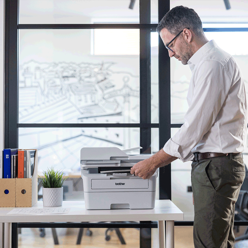 Our most quiet and compact professional mono laser all-in-one printer enables you to make the most of your office space.