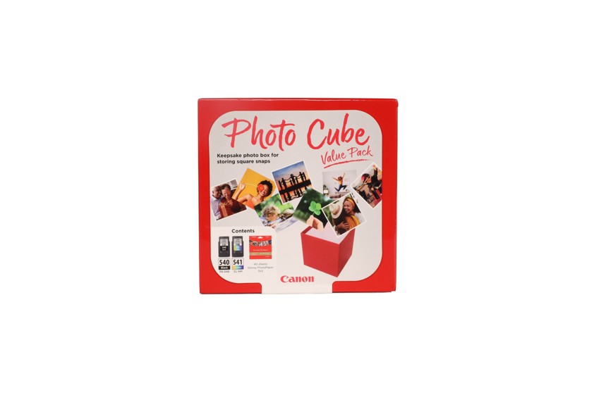 - The Photo Cube is a great way to keep your photos safe. Small enough to store around your home, it is a perfect way to store your most precious photos or give to friends and family as a gift. The red box measures 14 x 14 x 14cm (approximate), allowing for plenty of space to store printed images. Square photo printing is popular among young people and families, as the social media friendly format allows for more creative printing. This pack is perfect for social media printing, coming with Genuine Canon PG-540 Black Ink Cartridges, CL-541 C/M/Y Colour Ink Cartridges and 40 5x5” sheets of square Photo Paper Plus Glossy II, allowing you to get more creative with your printing.