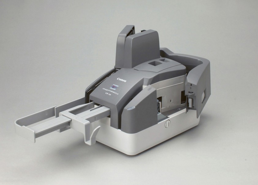 • High Speed Document Scanners The compact and productive imageFORMULA CR-50 cheque scanners are the ideal counter-top solution to efficiently process cheque image and customer data in the banking, financial, Government and retail organisations. - High-speed scanning: up to 50 cheques per minute. - Precise MICR reading supported by OCR technology. - Reliable paper feeding and document handling. - Built-in Imprinter for pre-scan endorsements. Compact and productive cheque scanning, perfect for over-the-counter transactions. Compact design, productive scanning The CR-50 is a small but powerful scanning device with an ultra compact footprint that sits comfortably on the smallest of desks or counters where space is at a premium. With productive scanning speeds of up to 50 cheques per minute users can complete their daily operations efficiently. High precision MOCR reading MICR (Magnetic Ink Character Recognition) reading is supported by OCR (Optical Character Recognition) ensuring a higher level of accuracy helping to reduce costly errors and save time. Advanced processing features Precision image processing technology, such as fine text filtering, delivers clearer, more legible images from documents allowing for sharper image capture and superior quality. A built-in imprinter comes standard for capturing important endorsement information to meet audit trail requirements. Reliable scanning you can trust Canon’s superior paper feeding technology ensures mixed batched documents or single items are processed without interruption allowing for a smooth operation. The CR-50 includes infrared double feed detection and paper thickness adjustment ensuring dependable cheques processing and minimising the risk of paper jams. Designed to perform in demanding environments of up to 2500 scans a day, you can be assured of reliability even when your workloads increase. Powerful software Canon’s Scanning Utility software provides scanning, file saving, image viewing and other functions to make operations effortless. The widely recognised Ranger Driver from Silver Bullet™ is also incorporated which enables system integrators to incorporate the CR-50 into their cheque processing workflow. A Software Developers Kit (SDK) is also available for developers to cost effectively integrate CR-50 into customised customer software applications.