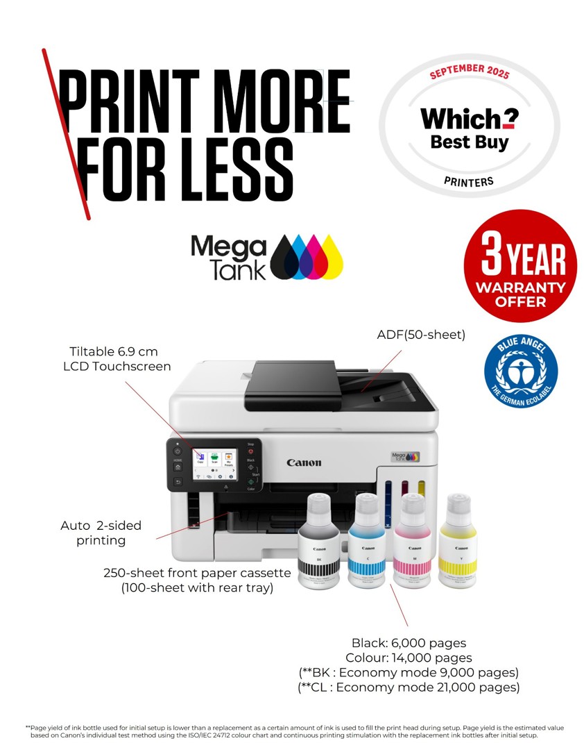 Produce business-quality documents quickly with average savings of 90% on the total cost of ownership vs top 10 laser and inkjet printers with these ever-dependable, high-volume refillable MegaTank printers.