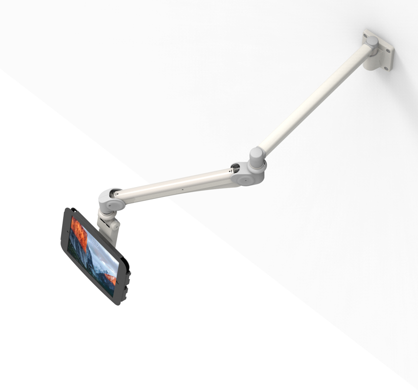 An ideal option for securely mounting a patient infotainment system or interactive touch screen, raised workstation or machinery monitoring system. Our Extra Long Reach arm was designed for use in the healthcare field; it can be fastened behind or above a bed or dental chair while extending out for optimal position and viewing angles.