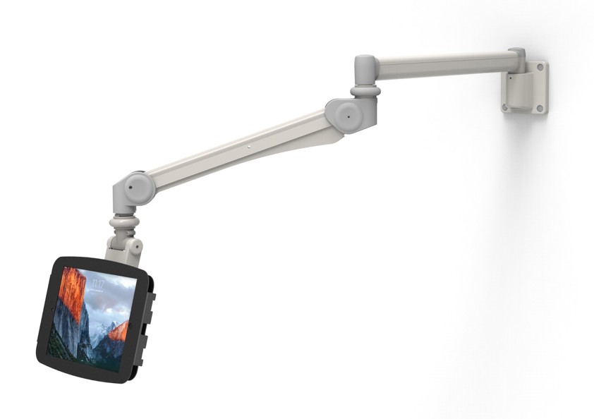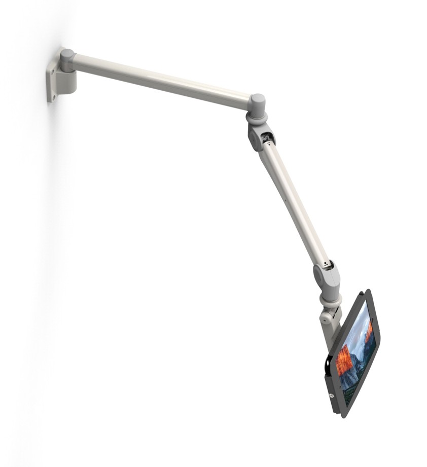 The Reach Extra Long arm is a cost-effective solution for our tablet enclosures and various monitors and screens. The Medical Reach arm can provide up to 4 feet of horizontal extension and can fold and swing out of the way.
