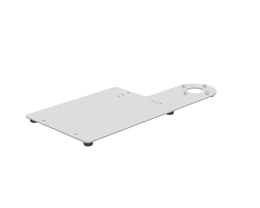 The Freestanding peripheral plate sits underneath the Samsung kiosk and allows for neat cable management.