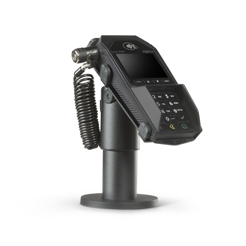 SpacePole DuraTilt is a stylish and durable payment mount designed to securely hold the Ingenico Desk/1500,Lane/3000.