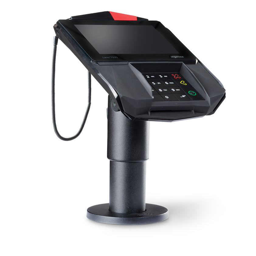 SpacePole DuraTilt is a stylish and durable payment mount designed to securely hold any UPM Ingenico payment device.