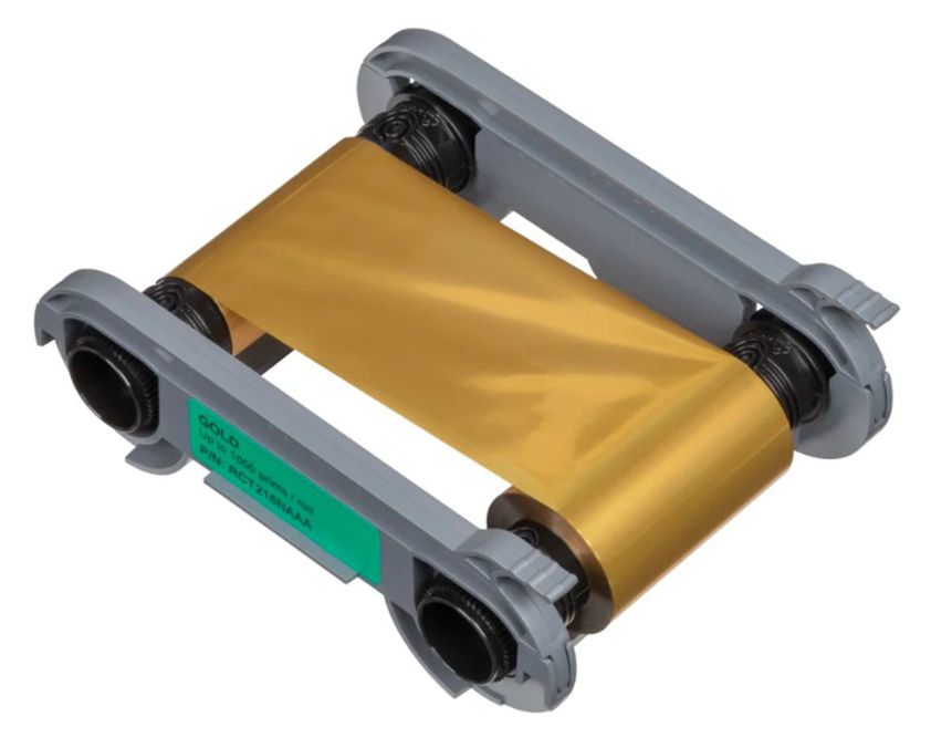 The Evolis RCT216NAAA metallic gold monochrome ribbon prints brilliant quality gold text and single-line art to pre-existing cards easily and effectively. With 1,000 print capacity, this ribbon is a great tool for refreshing cards in a medium to large-sized organisation.