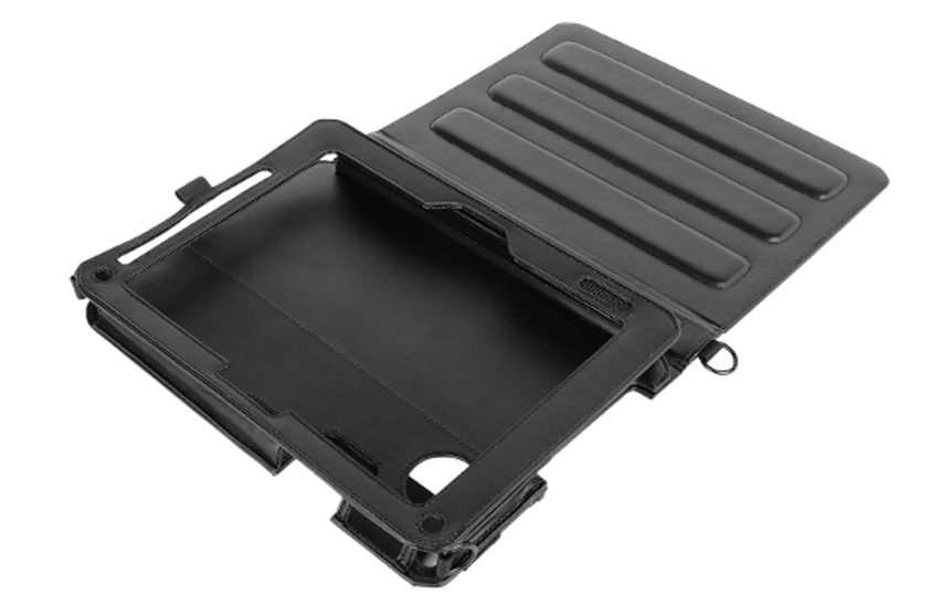 • Specifically designed for the UX10, the folio case features a durable, leather-look cover that perfectly wraps around the tablet to protect it from scrapes, dirt, and impact without getting in the way of accessing ports and controls.The front flap with built-in anti-slip stripes allows you to set up multiple horizontal stand angles for handsfree viewing. A pen holder is also integrated into the case for easy access and storage of your stylus or digitizer pen. For added convenience, the case includes four D-ring connectors for easy attachment of the shoulder strap or shoulder harness (sold separately). This provides versatility and allows the tablet to be transported in a number of ways.