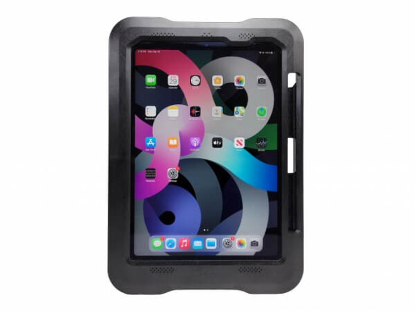 Works in portrait and landscape orientation Designed for Havis DS-TAB-100 Series docking stations Full access to camera, speakers, and controls Integrated charging through dock Kickstand provides angled viewing Easy to adjust hand strap included Rounded corners and edges for safety during airbag deployment Compatible with Apple pencil 2nd generation Havis shoulder strap (DS-DA-107) optional Docking station sold in package or separately Input port on case allows device to be charged when it's not in the Havis docking station