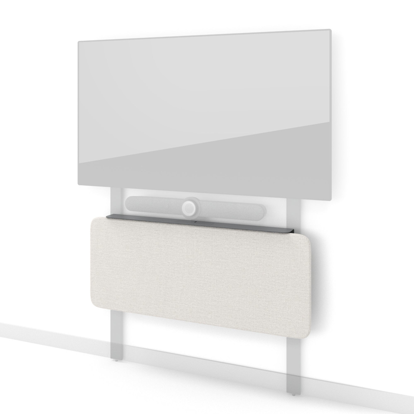 With the Video Meeting Hub's Device Panel you can mount and organize small devices and cables from the comfort of a tabletop in your office. Strap everything to the aluminum grid pattern using the provided hook & loop straps. Got VESA-mountable accessories like mini PCs? Great. The Device Panel also features a grid of VESA-compatible M4 holes so you can fasten components directly to the panel. When your panel is ready to deploy, simply hang it to the Video Meeting Hub's shelf.