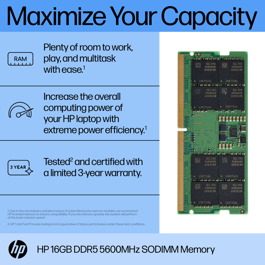 Upgrade your capacity for uninterrupted, undeterred, unbelievably fast speed. Upgrading to 16 GB DDR5 5600MHz SODIMM to open up your workspace to its full potential. Make way for all the things you need to get done, at once, with state-of-the-art processing power.