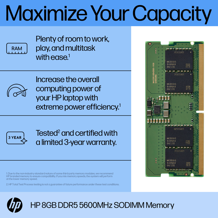 • HP 8GB DDR5 5600 SODIMM Memory