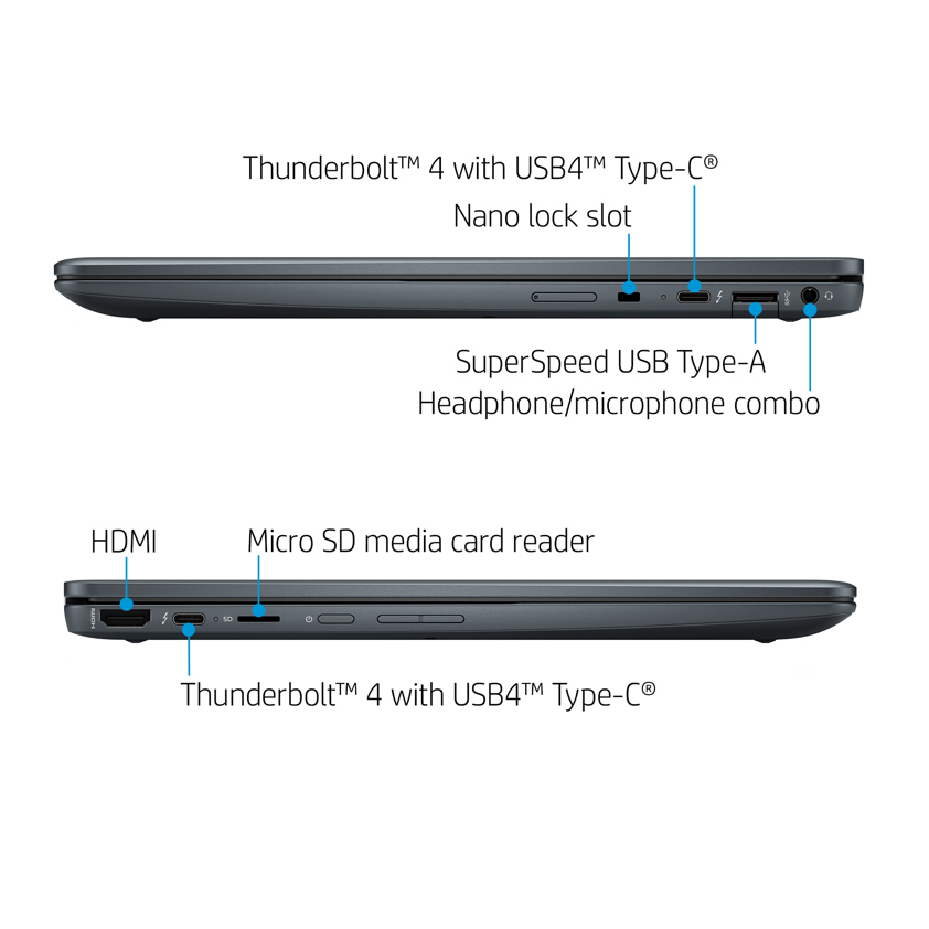 Design Colour name Slate blue Product type Chromebook Market positioning Cloud computing Form factor Convertible (Folder) Product colour Grey Original brand name HP Country of origin China Display HD type WUXGA+ Panel type IPS Display brightness 400 cd/m² Display diagonal (metric) 34.3 cm Touchscreen Yes Display resolution 1920 x 1280 pixels Display diagonal 34.3 cm (13.5") Anti-glare screen Yes Display glass type Gorilla Glass Display bezel technology Micro-Edge RGB colour space NTSC Colour gamut 72% Processor Processor generation 12th gen Intel® Core™ i7 Configurable TDP-down 12 W Processor cache type L3 Processor cache 12 MB Processor model i7-1265U Processor boost frequency 2.7 GHz Processor cores 10 Processor threads 12 Processor manufacturer Intel Processor family Intel® Core™ i7 Memory Memory form factor On-board Internal memory 32 GB Internal memory type LPDDR4x-SDRAM Memory clock speed 4266 MHz Memory slots 1x SO-DIMM Maximum internal memory 32 GB Number of free internal memory expansion slots 1 Storage Storage media SSD Optical drive type No Number of SSDs installed 1 SSD capacity 512 GB SSD interface PCI Express Card reader integrated Yes Compatible memory cards MicroSD (TransFlash) Total storage capacity 512 GB Total SSDs capacity 512 GB NVMe Yes Graphics Discrete graphics card No On-board graphics card family Intel Iris Xe Graphics On-board graphics card Yes On-board graphics card model Intel Iris Xe Graphics Discrete graphics card model Not available On-board GPU manufacturer Intel Audio Audio system B&O PLAY Built-in speaker(s) Yes Number of built-in speakers 2 Speakers manufacturer Bang & Olufsen Camera Front camera Yes Optical drive Optical drive type No Network Mobile network connection No Top Wi-Fi standard Wi-Fi 6 (802.11ax) WLAN controller model Intel Wi-Fi 6E AX211 Wi-Fi standards Wi-Fi 6 (802.11ax) Bluetooth Yes Bluetooth version 5.2 Antenna type 2x2 WLAN controller manufacturer Intel Ports & interfaces USB 3.2 Gen 2 (3.1 Gen 2) Type-A ports quantity 1 USB Type-C DisplayPort Alternate Mode Yes USB 2.0 ports quantity 0 HDMI ports quantity 1 HDMI version 2.0 Combo headphone/mic port Yes USB Power Delivery (USB PD) Yes Thunderbolt 4 ports quantity 2 Keyboard Numeric keypad No Full-size keyboard Yes Keyboard backlit Yes Keyboard colour name black Software Pre-installed software Chrome Enterprise Upgrade; HP QuickDrop; Chromebook Plus features Operating system installed ChromeOS Technical details Market positioning Cloud computing Form factor Convertible (Folder) Product colour Grey Number of speakers 2 Sustainability compliance Yes Sustainability certificates ENERGY STAR, TCO General Product Safety Regulation (GPSR) URL https://support.hp.com/us-en/document/ish_6126692-6126777-16?openCLC=true HP GTIN (EAN/UPC) 198415477019 HP GTIN (EAN/UPC) with options (AB9) 197029040879; (ABT) 197029881564; (UUZ) 196786492679 Processor special features Intel VT-x with Extended Page Tables (EPT) Yes Intel Trusted Execution Technology Yes Intel Stable Image Platform Program (SIPP) Yes Intel Flex Memory Access Yes Intel Virtualization Technology for Directed I/O (VT-d) Yes Execute Disable Bit Yes Embedded options available No CPU configuration (max) 1 Intel Virtualization Technology (VT-x) Yes Brand-specific features HP Sure View Yes HP Security tools Nano Security lock slot; Google Titan C; Zero Touch Enrollment HP segment Business HP GTIN (EAN/UPC) 198415477019 HP GTIN (EAN/UPC) with options (AB9) 197029040879; (ABT) 197029881564; (UUZ) 196786492679 HP special features HP Sure View Yes HP Security tools Nano Security lock slot; Google Titan C; Zero Touch Enrollment Battery Battery technology Lithium Polymer (LiPo) Number of battery cells 4 Battery capacity 50 Wh Power AC adapter power 65 W AC adapter frequency 50 - 60 Hz AC adapter input voltage 100 - 240 V USB Power Delivery (USB PD) Yes USB Type-C charging port Yes Security Password protection Yes Password protection type BIOS, Power on, User Fingerprint reader Yes Cable lock slot Yes Sustainability Sustainability compliance Yes Sustainability certificates ENERGY STAR, TCO Total carbon footprint (kg of CO2e) 150 Weight & dimensions Width 294.5 mm Depth 221.8 mm Height 16.6 mm Weight 1.27 kg Packaging data Package width 69 mm Package height 305 mm Package depth 483 mm Stylus pen Yes Features Country of origin China Supplier features Country of origin China Carbon footprint Total carbon footprint (kg of CO2e) 150 Total carbon emissions, w/o use phase (kg of CO2e) 18 Carbon emissions, manufacturing (kg of CO2e) 124 Carbon emissions, logistics (kg of CO2e) 4 Packaging content Stylus pen Yes Other features WLAN controller model Intel Wi-Fi 6E AX211 On-board graphics card Yes Audio system B&O PLAY Number of speakers 2 Display diagonal (metric) 34.3 cm Anti-glare screen Yes Country of origin China Manufacturer warranty 1 year (1/1/0) limited warranty includes 1 year of parts and labor. No on-site repair. Your parcel will arrive within 5 business days (excluding weekends and public holidays) after you place your order. Items are shipped in working days only, your order may arrive anytime between 7am and 9pm. Deliveries are not made on public holidays, so you can expect your order to arrive the next working day.