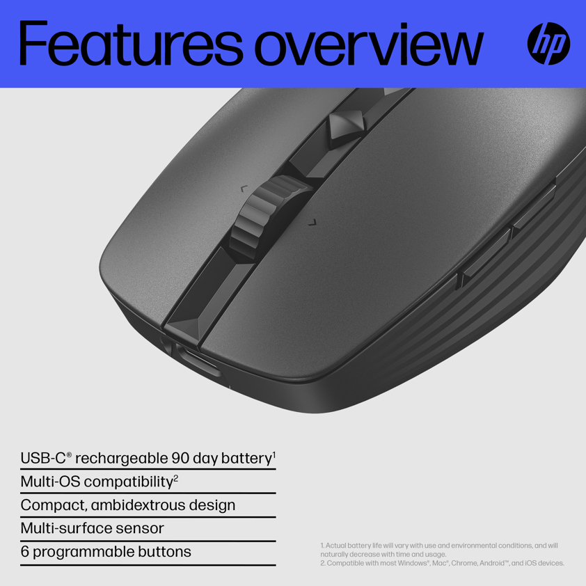 Tailor the 6 programmable buttons to fit you and your workstyle. Customize sensitivity and scroll speed, create app-specific shortcuts, and more, all through HP Accessory Center.