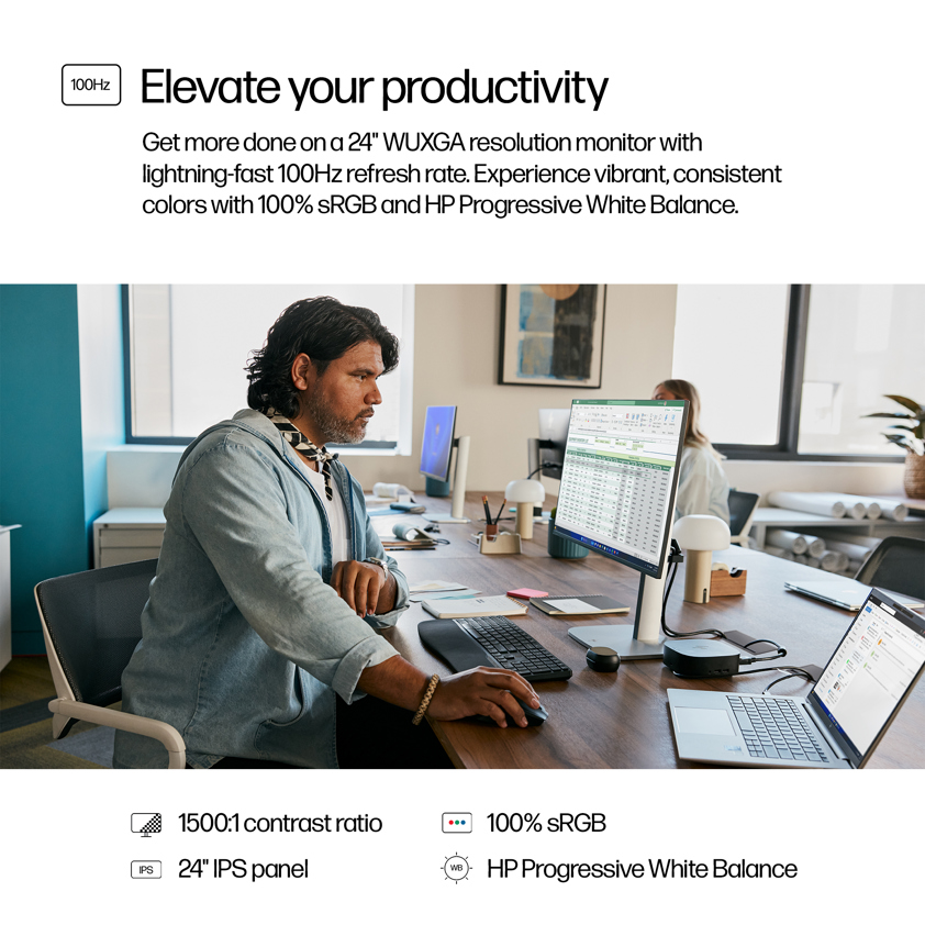 Get more out of your workday with the HP Series 5 Pro 24” WUXGA Monitor. Create the setup that works for the way you work, wherever you work, with refined visual clarity and adjustable comfort built into a sleek, modern design.