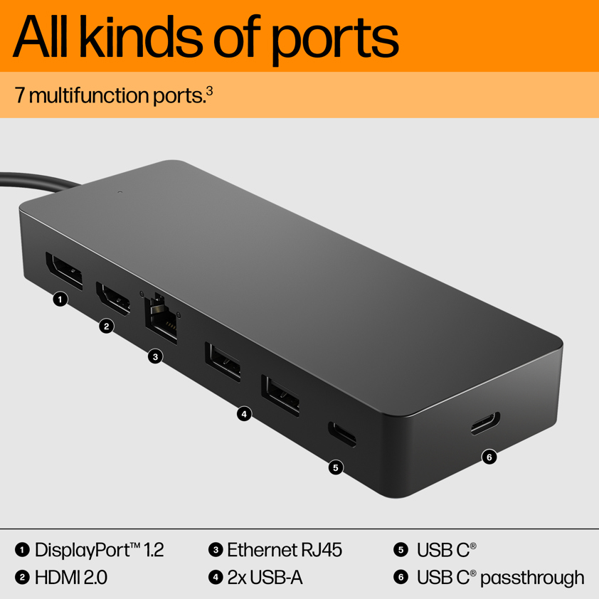 HP Universal - Docking station - USB-C - HDMI, DP - 10Mb LAN - with Laptop Charger - United Kingdom
