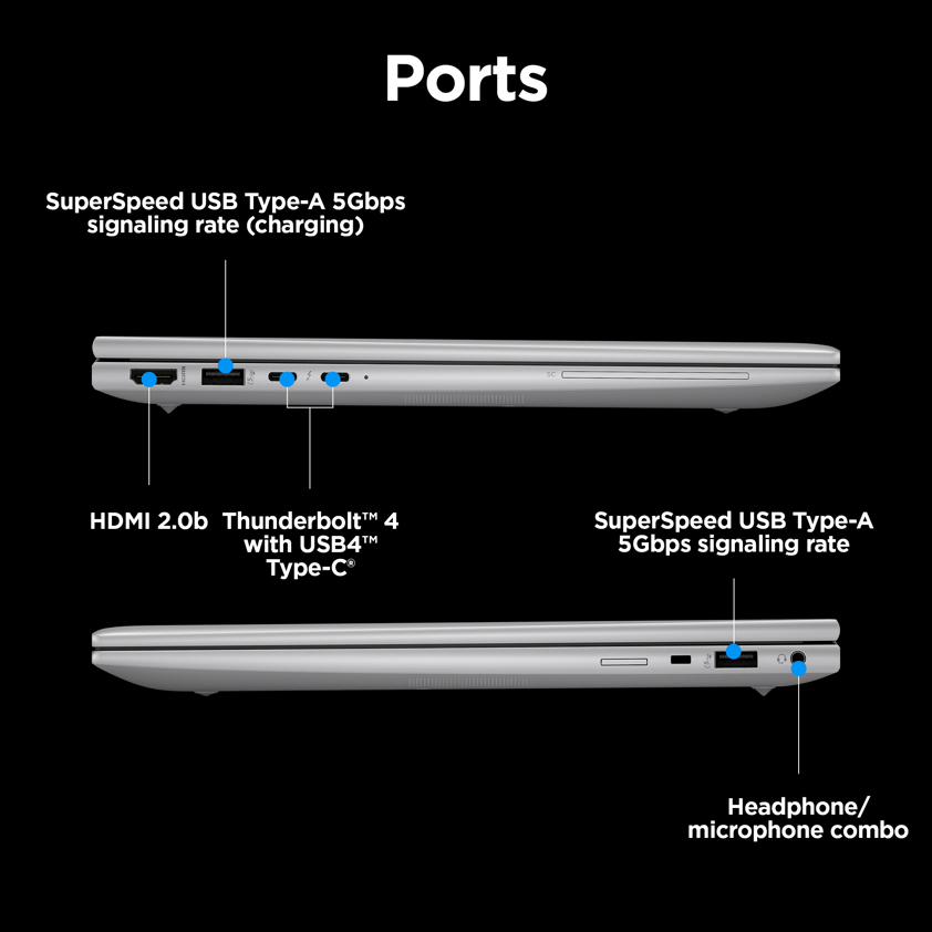 Design Product type Mobile workstation Market positioning Performance Form factor Clamshell Product colour Grey Original brand name HP Country of origin China Introduction year 2024 Display HD type WUXGA Panel type IPS LED backlight Yes Display brightness 400 cd/m² Display diagonal (metric) 35.6 cm Touchscreen No Display resolution 1920 x 1200 pixels Display diagonal 35.6 cm (14") Anti-glare screen Yes RGB colour space sRGB Colour gamut 100% Processor Processor generation AMD Ryzen 8000 Series Processor cache type L3 Processor cache 16 MB Processor frequency 3.3 GHz Processor model 8840HS Processor boost frequency 5.1 GHz Processor cores 8 Processor threads 16 Motherboard chipset AMD SoC Processor manufacturer AMD Processor family AMD Ryzen™ 7 Memory Memory form factor SO-DIMM Internal memory 32 GB Memory layout (slots x size) 2 x 16 GB Internal memory type DDR5-SDRAM Memory clock speed 5600 MHz Memory slots 2x SO-DIMM Maximum internal memory 64 GB Memory channels Dual-channel Storage SSD form factor M.2 Storage media SSD Optical drive type No Number of SSDs installed 1 SSD capacity 512 GB SSD interface PCI Express Total storage capacity 512 GB SSD memory type TLC Total SSDs capacity 512 GB NVMe Yes Graphics Discrete graphics card No On-board graphics card Yes On-board graphics card model AMD Radeon 780M Discrete graphics card model Not available On-board GPU manufacturer AMD Audio Number of microphones 2 Built-in speaker(s) Yes Number of built-in speakers 2 Built-in microphone Yes Camera Front camera Yes Front camera resolution (numeric) 5 MP Infrared (IR) camera Yes Optical drive Optical drive type No Network Mobile network connection No Top Wi-Fi standard Wi-Fi 6E (802.11ax) WLAN controller model RZ616 Wi-Fi standards Wi-Fi 6E (802.11ax) Bluetooth Yes Bluetooth version 5.3 Antenna type 2x2 WLAN controller manufacturer MediaTek Ports & interfaces USB 3.2 Gen 1 (3.1 Gen 1) Type-A ports quantity 2 USB 3.2 Gen 1 (3.1 Gen 1) Type-C ports quantity 0 USB Type-C DisplayPort Alternate Mode Yes USB Sleep-and-Charge ports 2 USB Sleep-and-Charge Yes USB 2.0 ports quantity 0 HDMI ports quantity 1 HDMI version 2.0b Combo headphone/mic port Yes USB Power Delivery (USB PD) Yes Thunderbolt 4 ports quantity 2 Performance Motherboard chipset AMD SoC Keyboard Pointing device Clickpad Numeric keypad No Spill-resistant keyboard Yes Keyboard backlit Yes Keyboard special features Odolná proti polití Input device model HP Premium Keyboard Software Bundled software HP Wolf Pro Security Edition (1 year) Operating system installed Windows 11 Pro Technical details Market positioning Performance Form factor Clamshell Product colour Grey Sustainable technologies and materials Low Halogen; Bulk packaging available; External power supply 90% efficiency; Molded paper pulp cushion inside box is 100% sustainably sourced and recyclable; Outside box and corrugated cushions are 100% sustainably sourced and recyclable; 60% post-consumer recycled plastic Sustainability compliance Yes Sustainability certificates TCO General Product Safety Regulation (GPSR) URL https://support.hp.com/us-en/document/ish_6126692-6126777-16?openCLC=true HP GTIN (EAN/UPC) 198415875822 Brand-specific features HP speaker type HP Dual Speakers HP front camera HP Webcam HP segment Business HP Artificial Intelligence AI PC HP GTIN (EAN/UPC) 198415875822 HP special features HP speaker type HP Dual Speakers HP front camera HP Webcam Battery Battery technology Lithium Polymer (LiPo) Number of battery cells 3 Battery capacity 56 Wh Fast charging Yes Fast charging time (50%) 30 min Power AC adapter power 65 W AC adapter frequency 50 - 60 Hz AC adapter input voltage 100 - 240 V USB Power Delivery (USB PD) Yes Security Password protection Yes Password protection type BIOS, Power on, User Fingerprint reader Yes Smart card reader Yes Sustainability Sustainable technologies and materials Low Halogen; Bulk packaging available; External power supply 90% efficiency; Molded paper pulp cushion inside box is 100% sustainably sourced and recyclable; Outside box and corrugated cushions are 100% sustainably sourced and recyclable; 60% post-consumer recycled plastic Sustainability compliance Yes Sustainability certificates TCO Total carbon footprint (kg of CO2e) 260 Weight & dimensions Width 315.6 mm Depth 224.3 mm Height 19.9 mm Weight 1.41 kg Packaging data Package width 483 mm Package height 305 mm Package depth 69 mm Features Country of origin China Supplier features Country of origin China Carbon footprint Total carbon footprint (kg of CO2e) 260 Total carbon emissions, w/o use phase (kg of CO2e) 25 Carbon emissions, manufacturing (kg of CO2e) 218 Carbon emissions, logistics (kg of CO2e) 18 Logistics data Harmonized System (HS) code 8471300000 Other features WLAN controller model RZ616 On-board graphics card Yes Display diagonal (metric) 35.6 cm Anti-glare screen Yes Country of origin China Harmonized System (HS) code 8471300000 Manufacturer warranty 1 year (1/1/0) limited warranty includes 1 year of parts and labor. No on-site repair. Your parcel will arrive within 5 business days (excluding weekends and public holidays) after you place your order. Items are shipped in working days only, your order may arrive anytime between 7am and 9pm. Deliveries are not made on public holidays, so you can expect your order to arrive the next working day.