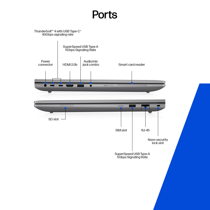 • HP ZBook X G1i 16 inch Mobile Workstation PC Wolf Pro Security Edition - Data Science Intel Core Ultra 9 285H 40.6 cm (16") WQUXGA 64 GB DDR5-SDRAM 1 TB SSD NVIDIA RTX PRO 2000 Blackwell Wi-Fi 7 (802.11be) Windows 11 Pro AI Workstation, AI PC Silver