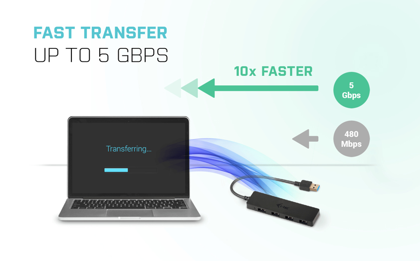 i-tec USB 3.0 HUB is an ideal companion for everybody who does not have enough USB ports in his/her notebook, ultrabook or PC and who has to constantly connect and disconnect his/her favorite USB equipment such as flash disks, mobile phones, tablets, digital cameras, MP3 players, printers, etc.