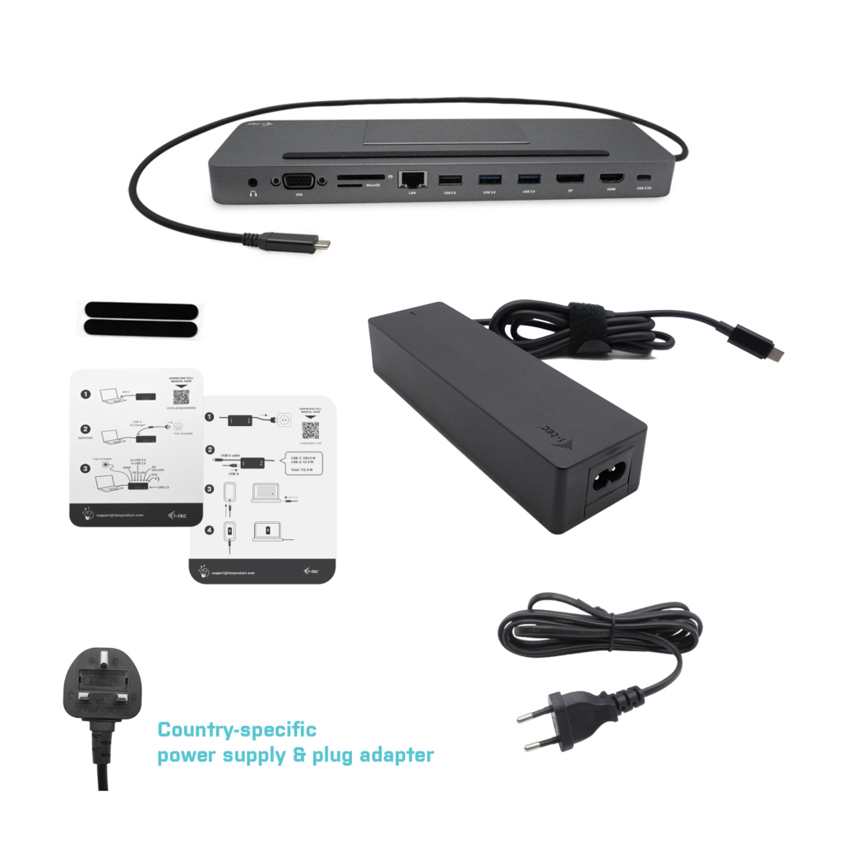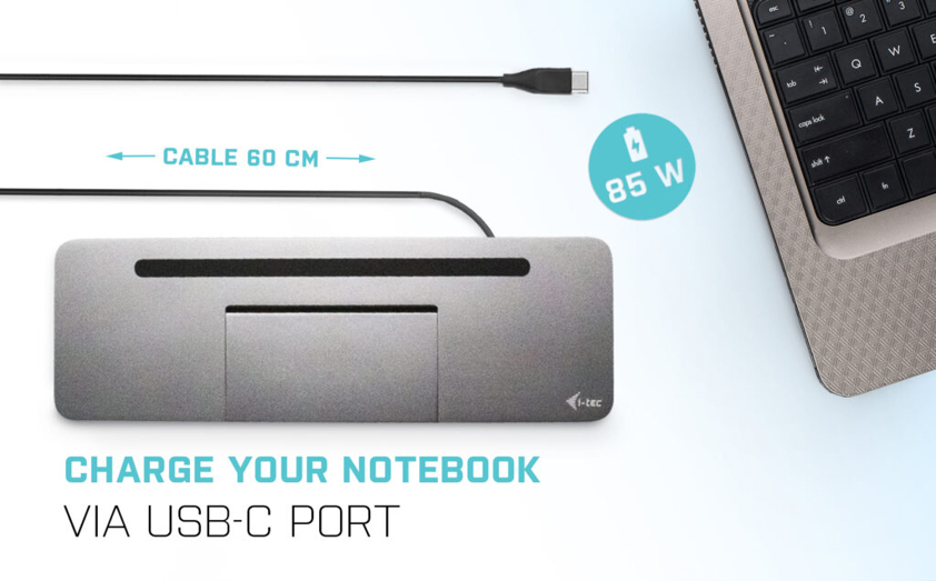 i-tec Metal SB-C Ergonomic 4K 3x Display Docking Station with Power Delivery 85 W + Universal Charger 100 W
