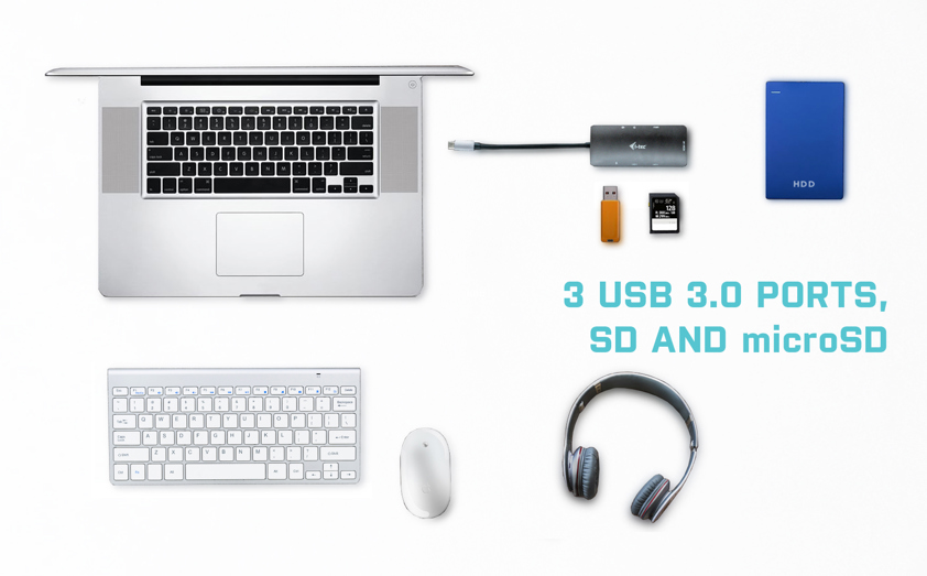 The new USB-C port has a number of tricks up its sleeve! Provided your laptop or tablet supports power delivery through this port, you gain the ability to connect all you need (data transfer, video and power supply) using a single cable.