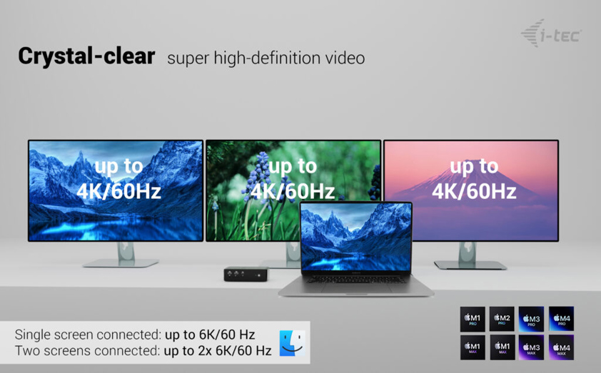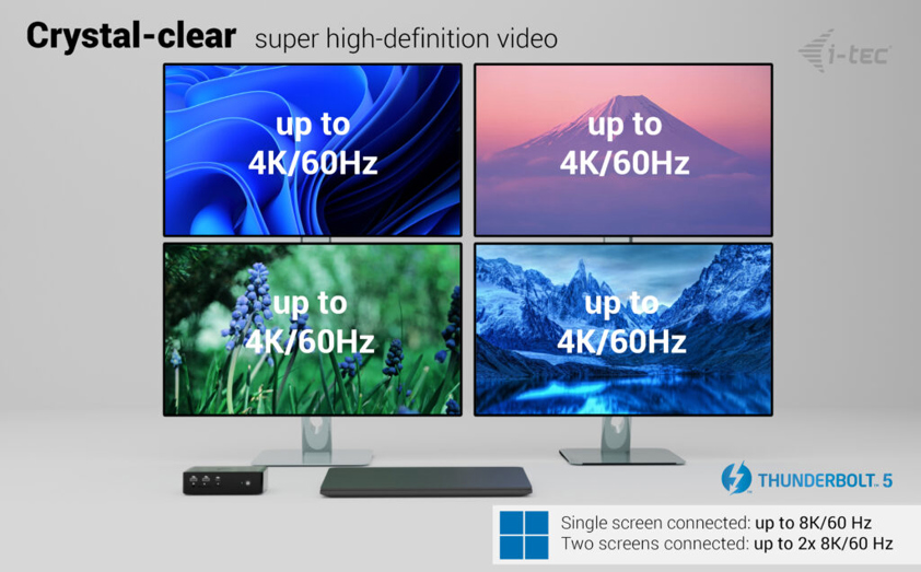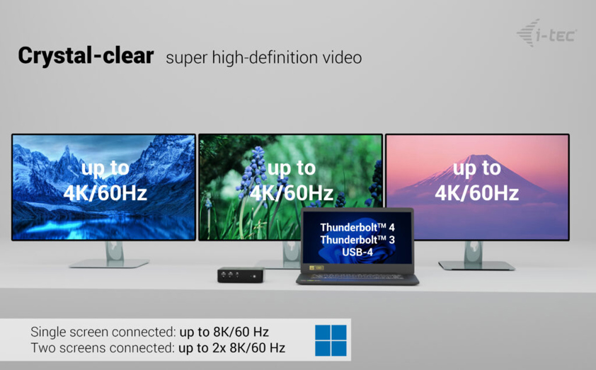 Extreme performance, ultra-fast data transfer, and support for resolutions up to 8K/60 Hz. The most powerful i-tec docking station on the market!