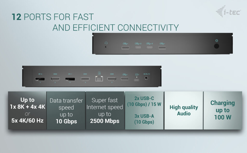 i-tec Universal 5x 4K/60Hz Display Docking Station + Power Delivery 100W
