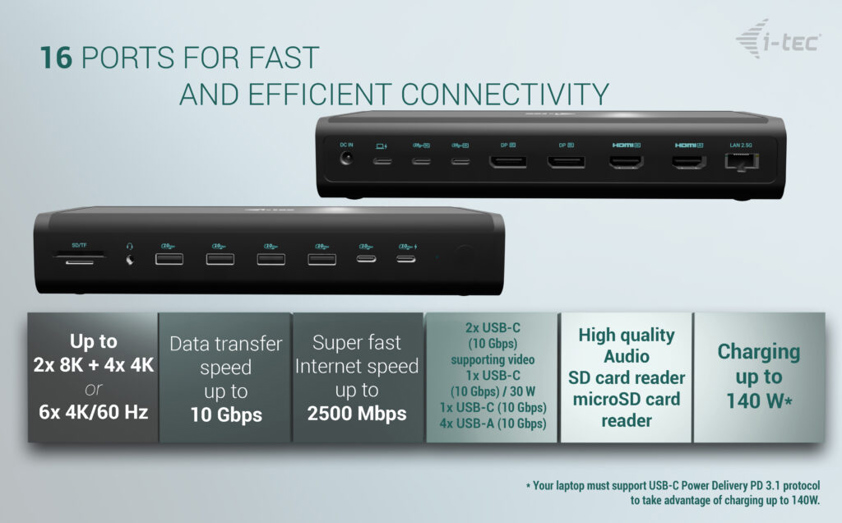 i-tec Universal 6x 4K/60Hz Display Docking Station + Power Delivery 140W