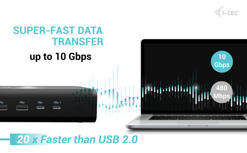 The ultimate performance docking station. Supports up to six external monitors* at 4K/60Hz. Or, two can run simultaneously even at 8K! The perfect product for users who require multiple monitors without compromising on image stability, resolution and refresh rate. The dock also features a USB-C fast charging port (with up to 30W charging power), especially for charging smartphones and tablets, fast USB ports, a 2.5 Gbps LAN port, as well as other peripherals.