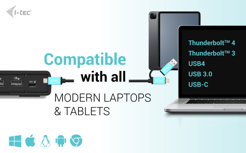• i-tec USB 3.0 / USB-C / Thunderbolt 3 Dual Display Docking Station Gen2 + Power Delivery 100W
