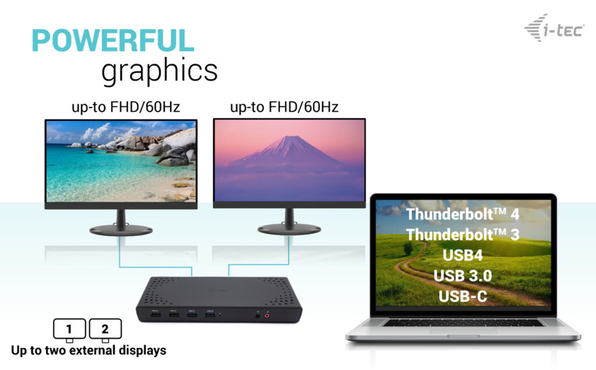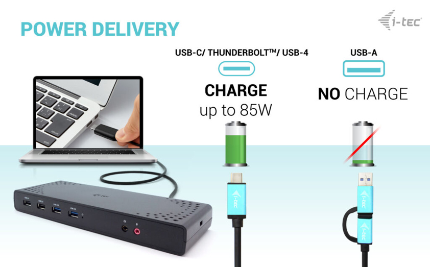 • i-tec USB 3.0 / USB-C / Thunderbolt Dual Display Docking Station + Power Delivery 100W