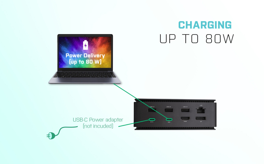 This product is a product set of a docking station and a universal charging adapter. By purchasing this kit, you get a complete solution that allows you to easily connect your favorite accessories, including LAN and external monitors, as well as easily and conveniently charge your devices (including your laptop or tablet).