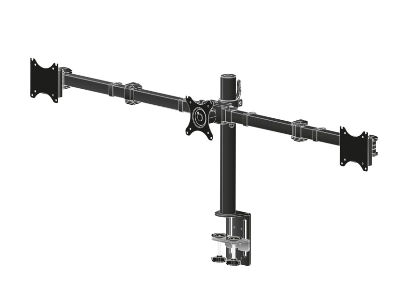 • The iiyama DS1003C-B1 is a desk mount for three flat screens up to 27”. Thanks to the arm you can create a triple monitor setup even if your desk space is very limited, and the cable management system helps to keep your workplace tidy. Broad adjustment capabilities, including tilt, height and rotation, the arm offers, allow you to easily adjust the position of the screens to your preferences assuring comfortable and healthy body posture.