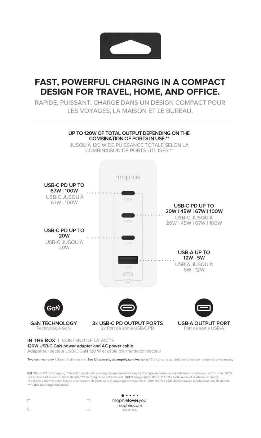 • mophie Accessories-Wall Adapter-USB-C-PD-HUB-120W-GAN-White-UK(3xUSBC + 1xUSBA)