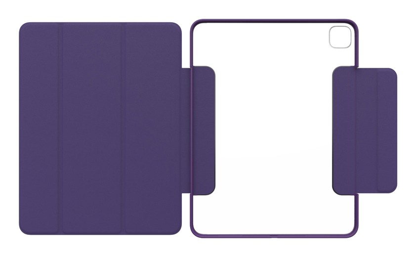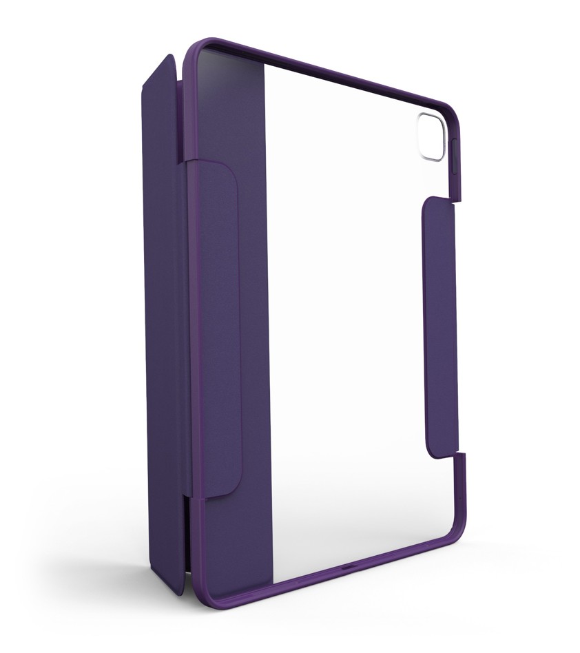 • Symmetry Series Folio is an ultra-slim clear folio case designed to protect your tablet against drops and scratches and its clear back makes it easy to identify engravings and asset tags. The microfiber folio lining guards the screen and magnets hold it closed. The magnets also activate sleep and wake modes, providing quick-start functionality for your tablet and preserving its battery. The folio quickly converts into multiple positions for hands-free typing and viewing.