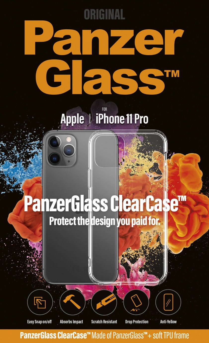 - Put the design of your iPhone at center stage with the PanzerGlass® ClearCase™. The ClearCase™ features a transparent back cover that provides a clear view to the beautiful design of the back of your phone. The case is surrounded by a TPU frame with a honeycomb pattern that provides increased shock absorption. The ClearCase™ also provides an extra level of protection from germs and bacteria by featuring an innovative anti-bacterial coating that is proven to kill up to 99.99% of the most common surface bacteria. Combine the ClearCase™ with a PanzerGlass® screen protector for full 360-degree protection.