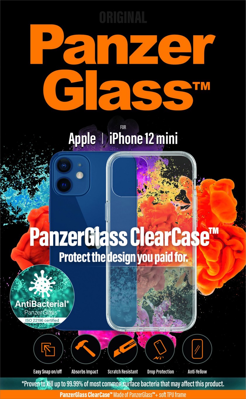 - Put the design of your iPhone at center stage with the PanzerGlass® ClearCase™. The ClearCase™ features a transparent back cover that provides a clear view to the beautiful design of the back of your phone. The case is surrounded by a TPU frame with a honeycomb pattern that provides increased shock absorption. The ClearCase™ also provides an extra level of protection from germs and bacteria by featuring an innovative anti-bacterial coating that is proven to kill up to 99.99% of the most common surface bacteria. Combine the ClearCase™ with a PanzerGlass® screen protector for full 360-degree protection.