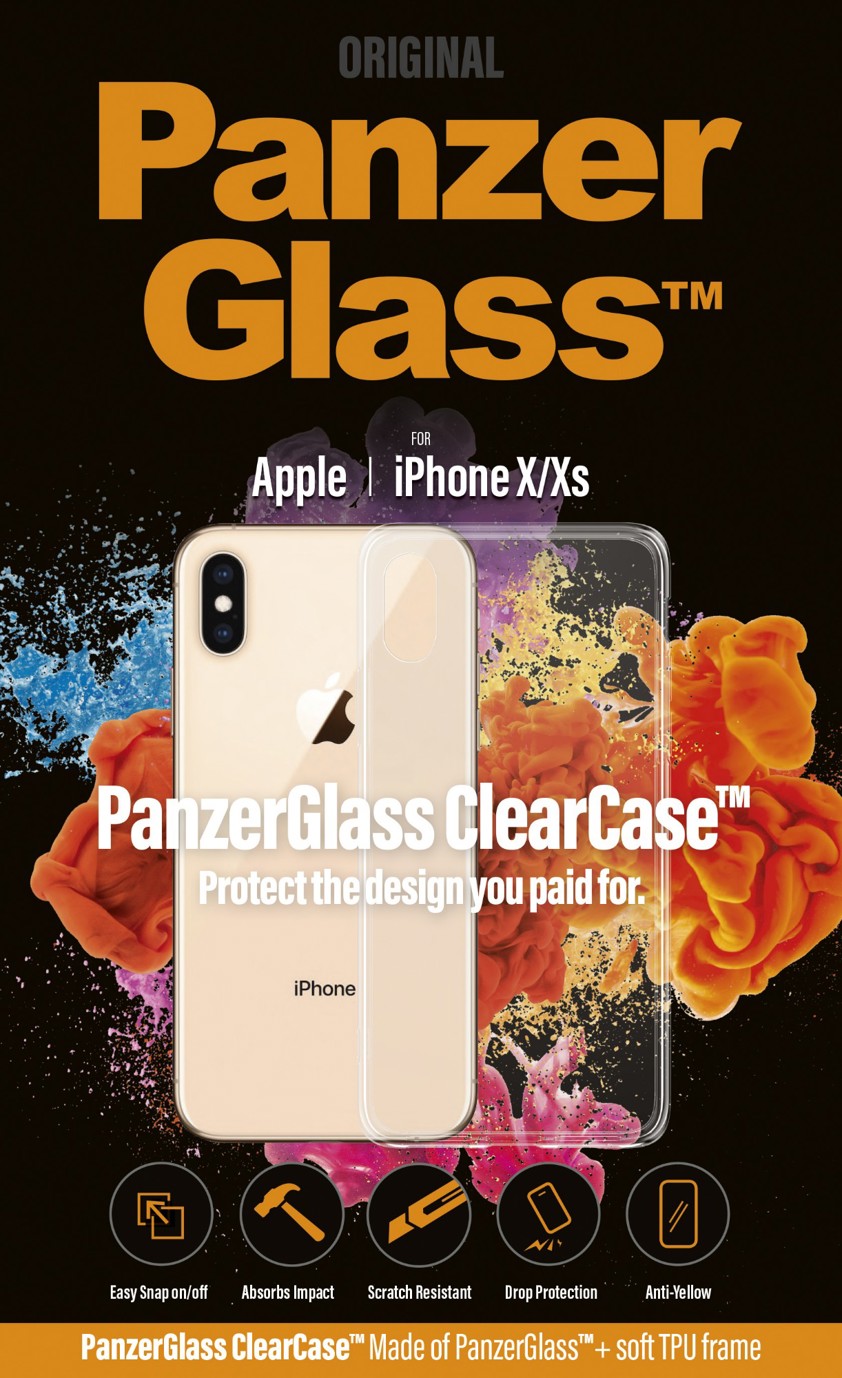 - PanzerGlass® ClearCase™ for Apple iPhone protects the beautiful design you paid for while providing uncompromising protection against drops, dust, and scratches. Crafted with PanzerGlass® + a soft TPU frame, ClearCase™ fits right over the buttons for easy and full access to all functions. The ClearCase™ coating prevents discoloration and does not affect the wireless charging. The ClearCase™ has perfect alignment with a PanzerGlass® screen protector. Creates the potential for ultimate 360° protection for your iPhone. Proven to kill up to 99.999 % of most common surface bacteria