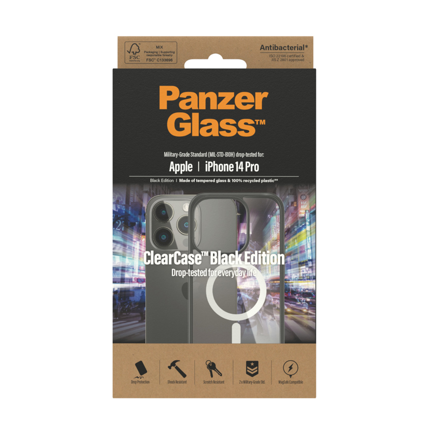 Put the design of your phone at center stage with the PanzerGlass® ClearCase The case features a soft frame in classic black combined with a transparent back cover made of toughened glass, also called tempered glass, that provides a clear view of your phone’s beautiful design. It is fully MagSafe compatible and has been drop-tested under 2 x Military Grade Standard conditions, which means it can withstand several drops from a height of 2.4 meters or a running-down-the-stairs-and-accidently-dropping-my-device kind of height. The ClearCase also provides an extra level of protection from germs and bacteria by featuring an innovative anti-bacterial coating that is proven to kill up to 99.99% of the most common surface bacteria.