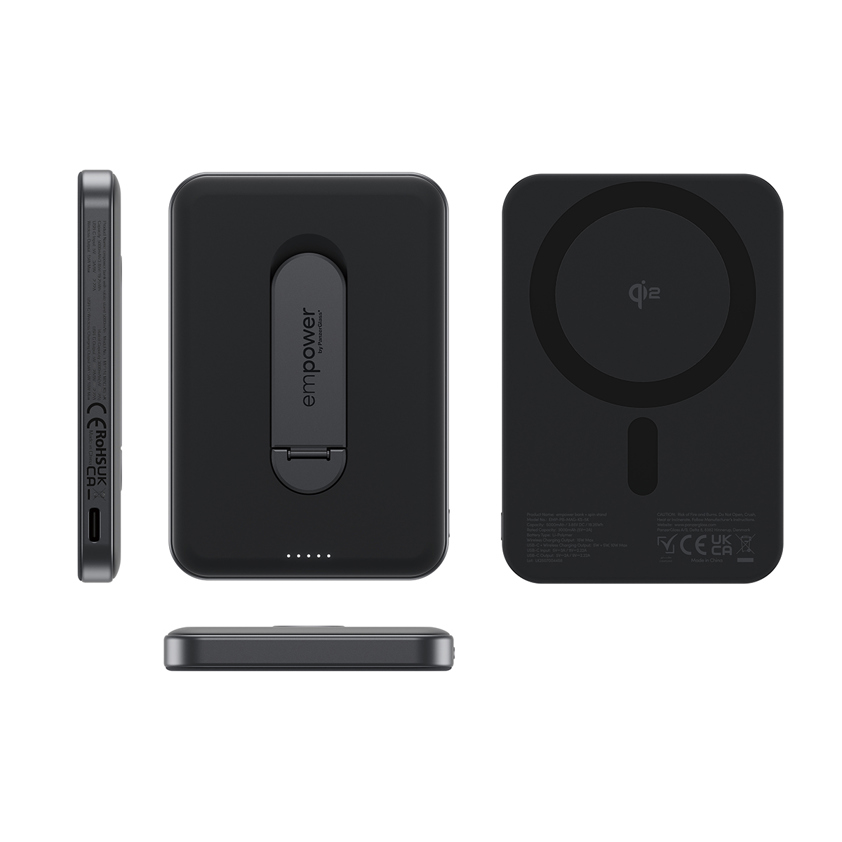 Introducing the empower by PanzerGlass® empower bank w. spin stand 5000mAh – where performance meets dependability! This robust empower bank features a compact scientific design and rigorous materials selection, resulting in a total thickness of only 0.43 inches (11mm). Carefully designed to ensure longevity and durability, the empower Bank has been extensively tested, confirming it’s a reliable choice for everyday use.