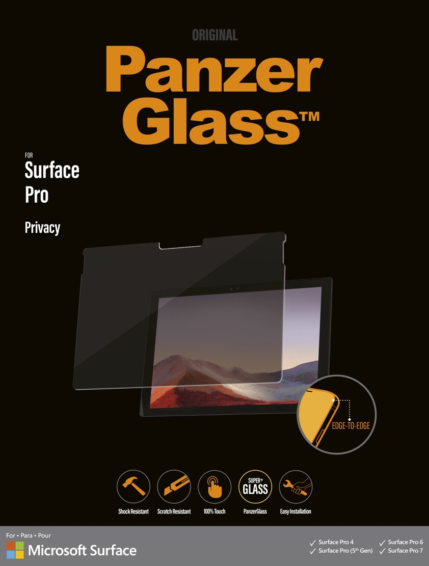 • The ultimate screen protection for Microsoft Surface. PanzerGlass® screen protector is made of flat tempered glass and covers the entire front surface of the device. The glass features full silicone adhesive which is carefully optimized to match the screen and device perfectly whilst saving perfect touch sensitivity and still delivering the superior PanzerGlass® strength.