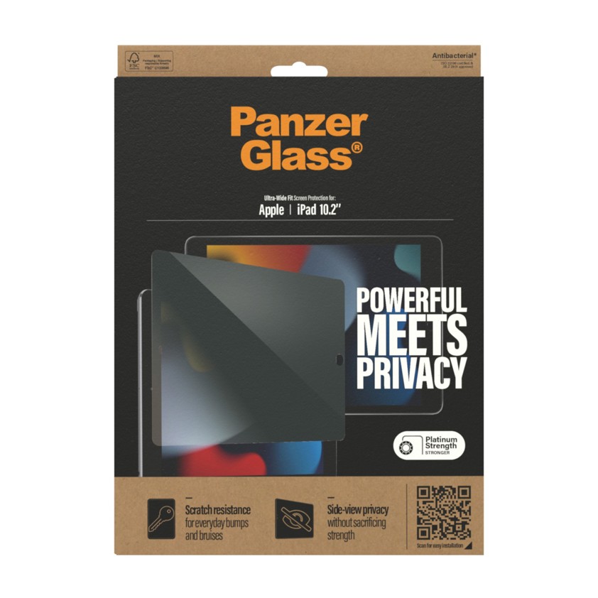 Private messages. Bank details. Pin codes. With this screen protector, your secrets are safe from the prying eyes of people sitting next to you on the train, on the bus or in the office. The specially designed privacy filter renders the content of your screen virtually invisible to everyone except you. Protect your iPad from the hazards of everyday life with PanzerGlass®. Accidental bumps against sharp-edged table corners or crushing falls onto stone-hard floors are no match for this scratch and shock-resistant screen protector. It even has a smudge-free coating with antibacterial effect that reduces traces of fingerprints and kills up to 99.99% of all common surface bacteria. The screen protector is easy to apply and once installed, you’ll never again fear the sight of your iPad tumbling to the ground. This may never happen, but if it does, you’ll regret not having clicked “add to cart”.