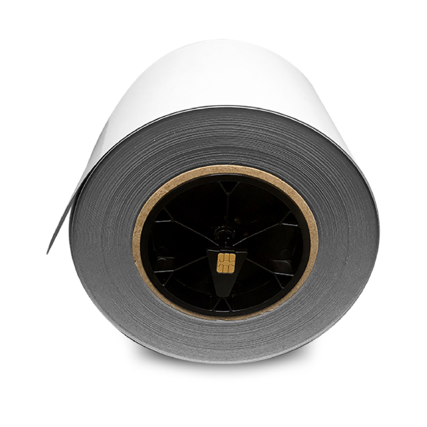 LX610 Magnetic Material is a smooth, bright white face sheet with a magnetic backing. This continuous stock material is used for digital die-cut magnets on the LX610.