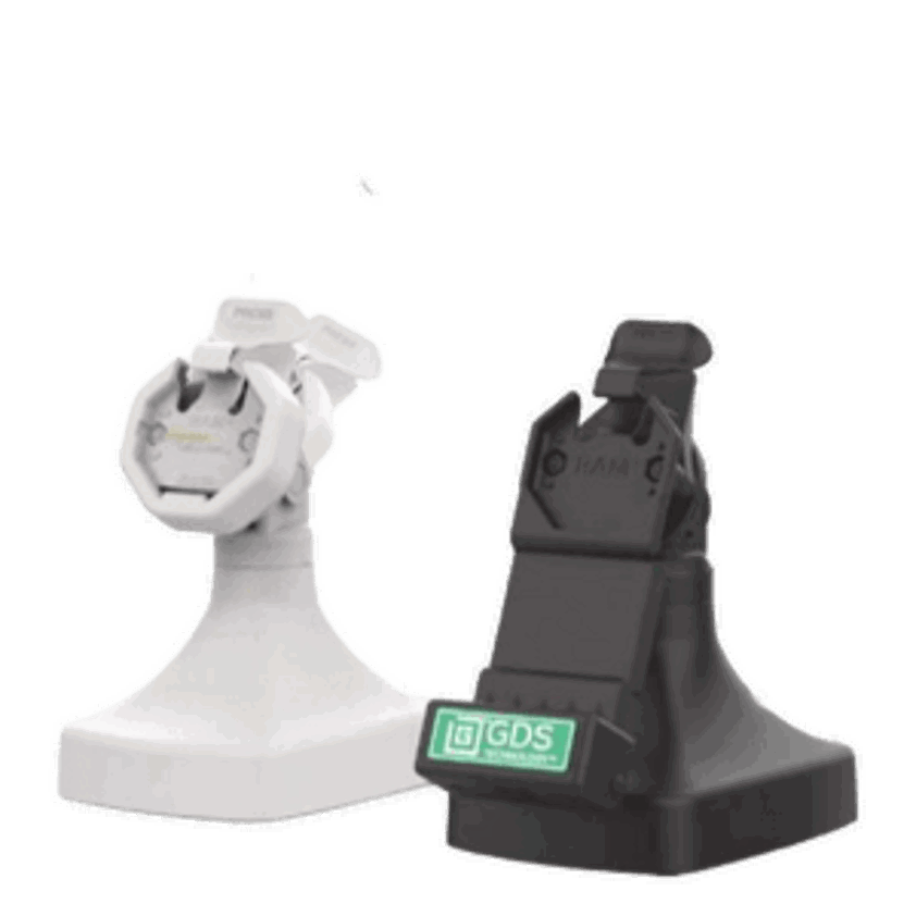 • The RAM Mounts GDS Uni-Conn docking station is a free-standing dock designed for devices enclosed in an IntelliSkin Thin-Case with Rear Pogo Pads.This solution can swivel 180 degrees and allows the device to tilt 180 degrees, making it ideal for customer-centric industries like retail, hospitality, food service, and more.The snap-in holder keeps your device securely in place while enabling fast charging via the integrated pogo pins, with power supplied through a USB-C connection.The docking station features a weighted base and rubber pads that prevent it from sliding on surfaces.It also supports an easy docking and undocking process:Insert the tablet with the IntelliSkin Thin-Case protective sleeve and Rear Pogo Pads into the base of the dock and push it back until it snaps into place.To remove it, simply press the lever to release the tablet.Product features RAM-GDS-DOCK-D14-U3C:Only compatible with IntelliSkin Thin-Case (Rear Pogo Pads)Snap-In functionEasy insertion and removalCharging functionOutput Voltage: 5V-20V @ 3A max (USB-C Tablets)Power Output: 60W maxInput Connector: USB-CInput Cable Length: ca. 150 cmIncludes USB-C 2.0 CableProduct Dimensions:Height from base to tilt bolt: 14.02 cm Base Width: 13.03 cm Base Depth: 16.84 cmWeight: approx. 2.76 kg Additional information: The Lever Stop included with this dock is required in order to function properly. Warranty on dock is void if dock is used without Lever Stop.Devices shown are not included in the delivery.Only the RAM-GDS-DOCK-D14-U3C is supplied.
