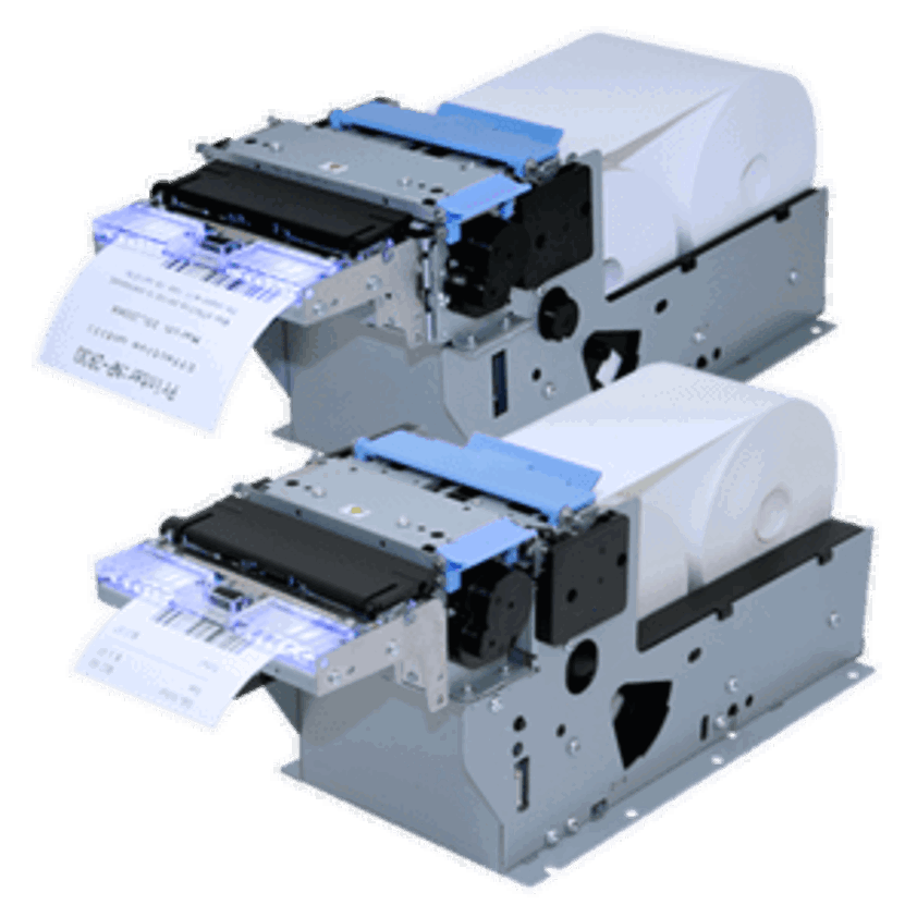 installation printing mechanism, direct thermal, resolution: 8 dots/mm (203 dpi), media width (max.): 58 mm, print width (max.): 52 mm, roll diameter (max.): 83 mm, 250 mm/s, cutter, USB, RS232