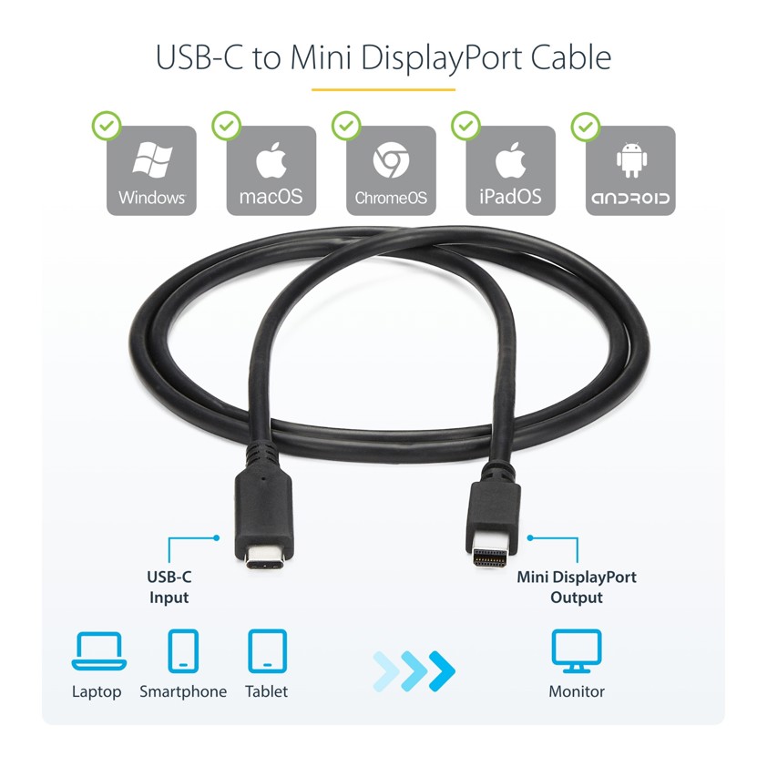 StarTech.com 1 m (3.3 ft.) USB-C to Mini DisplayPort Cable - 4K 60Hz - Black